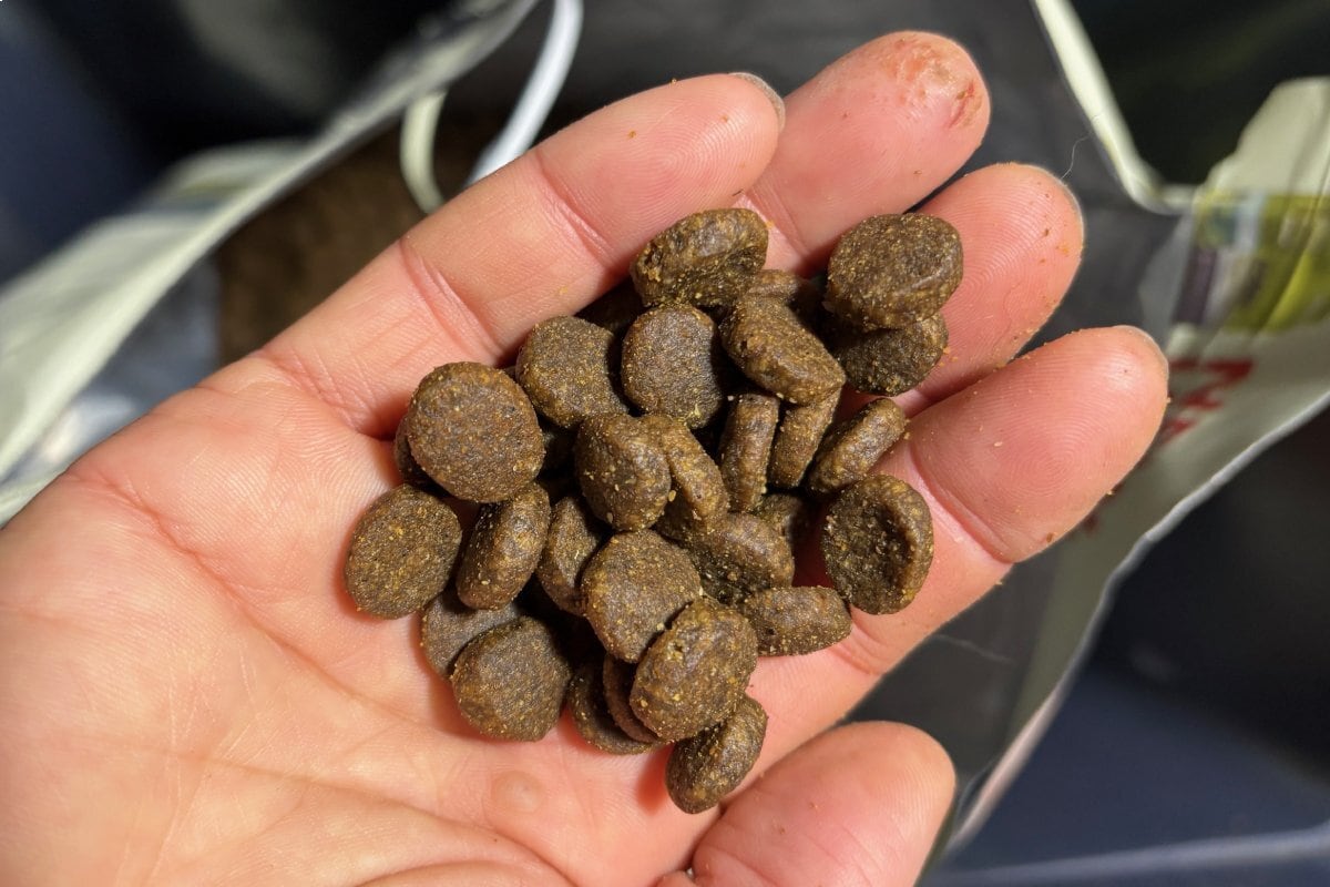 【原材料】生ラム肉(8.5%)、生鴨肉(8.5%)、卵(8%)、乾燥ラム肉(8%)、乾燥ニシン(7%)、乾燥七面鳥肉(7%)、丸ごとグリーンピース、丸ごと赤レンズ豆、丸ごとヒヨコ豆、湖で漁獲された生の淡水魚*(5%)、フィッシュオイル(4%)、生ラムレバー(4%)、鴨レバー(4%)、生七面鳥肉(4%)、丸ごと緑レンズ豆、丸ごとピント豆、丸ごとイエローピース、レンズ豆繊維、鴨脂肪(2%)、エンドウ豆スターチ、乾燥ケルプ、新鮮丸ごとカボチャ、新鮮丸ごとバターナッツスクワッシュ、新鮮丸ごとニンジン、新鮮丸ごとリンゴ、新鮮丸ごと洋梨、新鮮丸ごとズッキーニ、乾燥チコリールート、フリーズドライ鴨肉・鴨レバー、フリーズドライラム肉・ラムレバー、新鮮ケール、新鮮ホウレン草、新鮮カブラ菜、新鮮ビートの葉、丸ごとクランベリー、丸ごとブルーベリー、丸ごとサスカトゥーンベリー、ターメリック、オオアザミ、ゴボウ、ラベンダー、マシュマロルート、ローズヒップ*タルビー、白身魚、ノーザンパイク、ボラを混ぜたもの酸化防止剤:植物油から抽出したトコフェロール:308mg、クエン酸:40mg、ローズマリーエキス:105mg添加栄養素:3b606(亜鉛:150mg)、3b406(銅:11mg)、3a821ビタミンB1:25mg、3a841ビタミンB5:8mg、3a831ビタミンB6:7.5mg、3a700ビタミンE:50IU添加腸球菌:4b1707エンテロコッカスフェシウムNCIMB104152.2x10^6CFU.